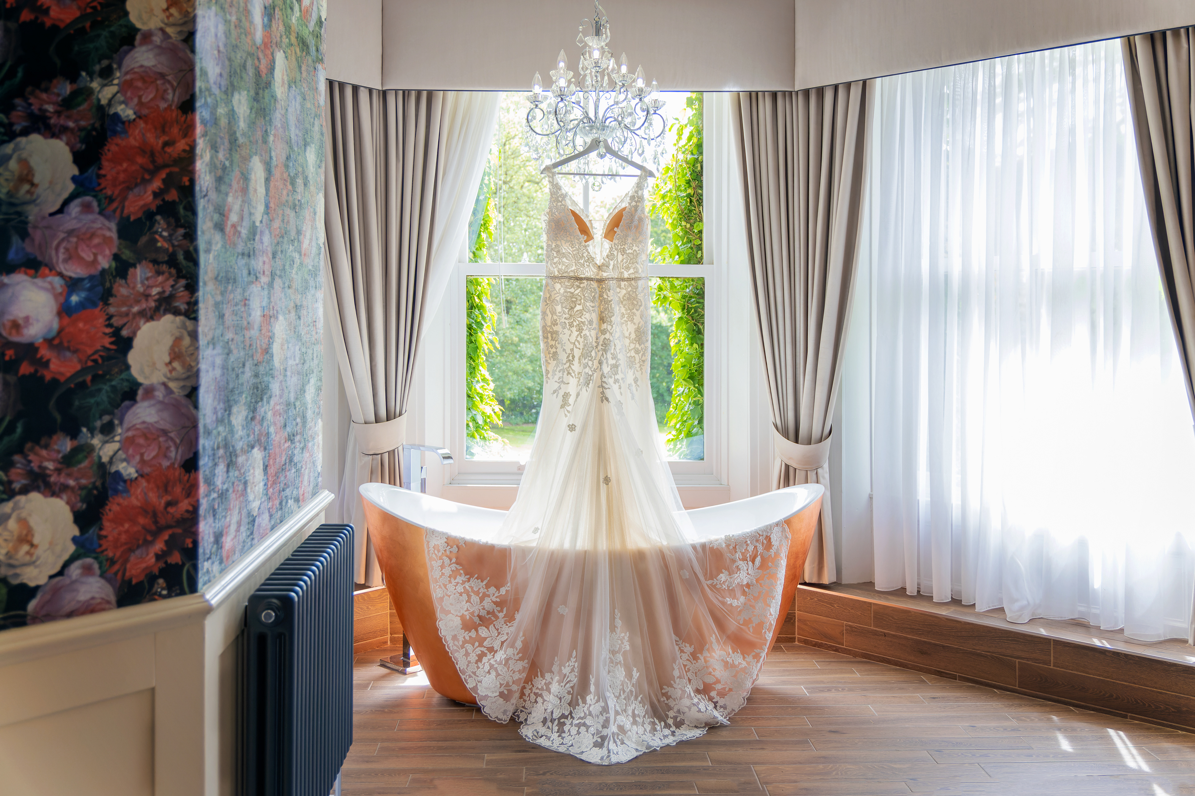 In the mean time the ladies had left Thicket Lodge and had been relocated in the bridal suite inside the main hall for the final stages of getting ready. This room complete with four poster bed also had an amazing free standing bath in the bay window which made for some fantastic photos.
